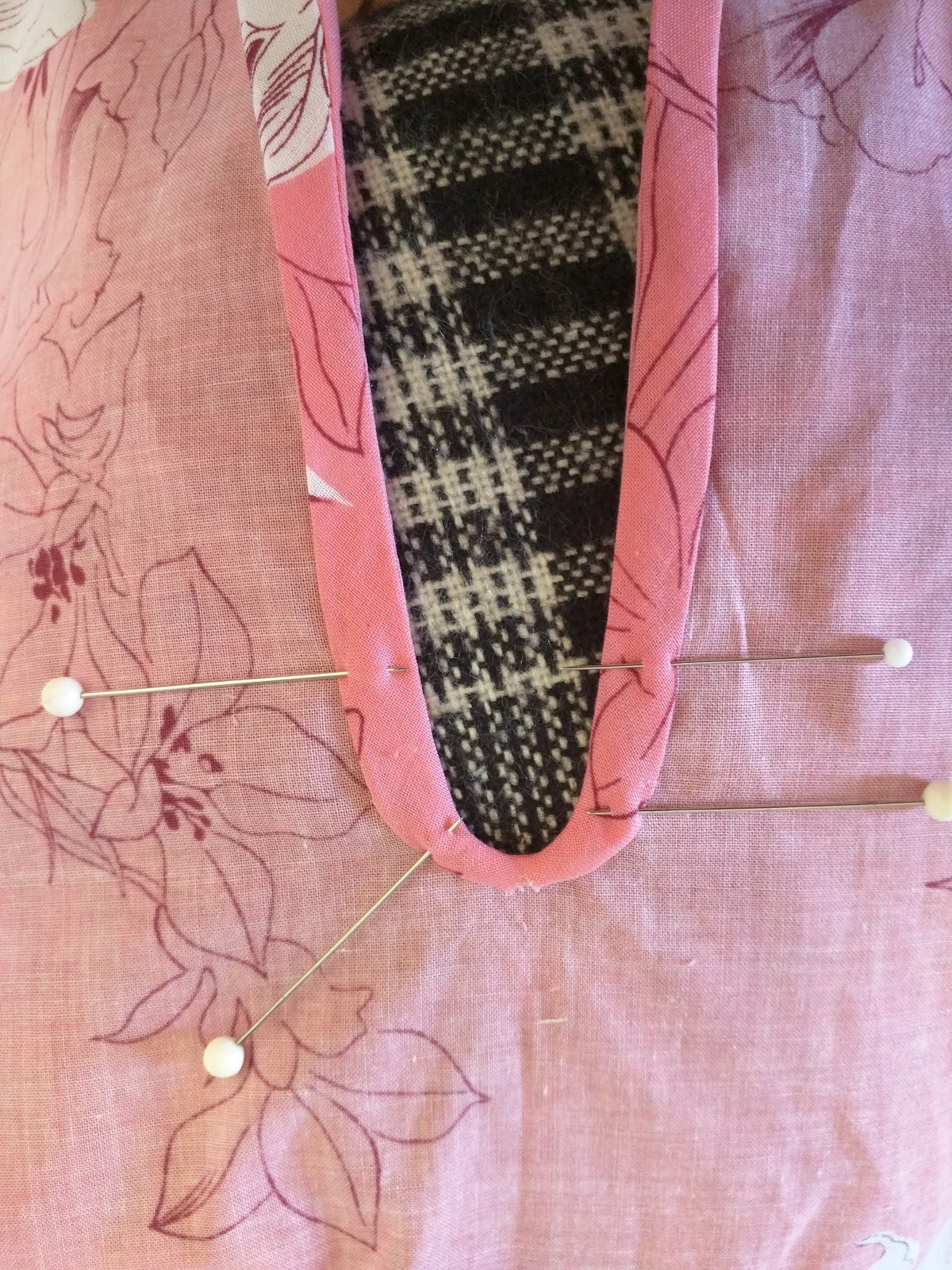 | I used my bias tape stash to create the casing for the elastic neckline. |